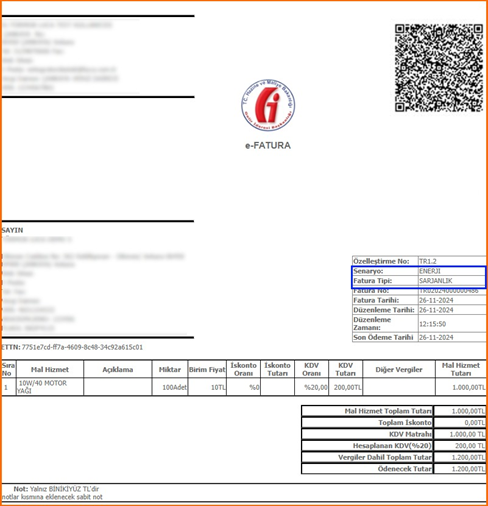 Bu faturalarda Fatura Tipi ŞARJANLIK ve ŞARJ olarak karşımıza gelmektedir.