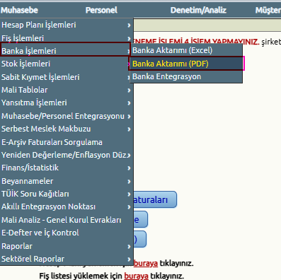 Muhasebe>Banka İşlemleri >Banka Aktarım (PDF)