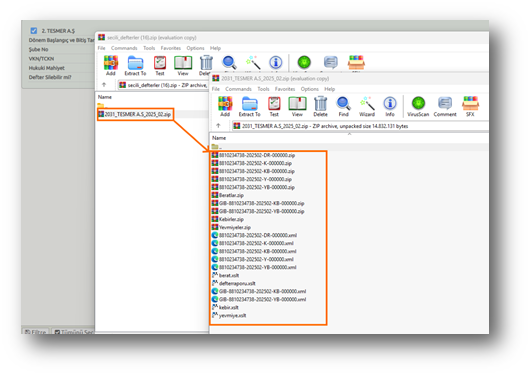 Dosya içeriklerinde defterler, beratlar ve GİB Beratları yer almaktadır.
